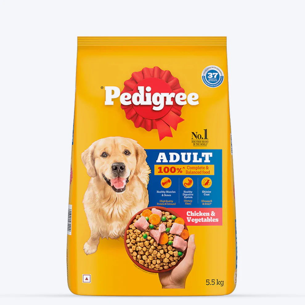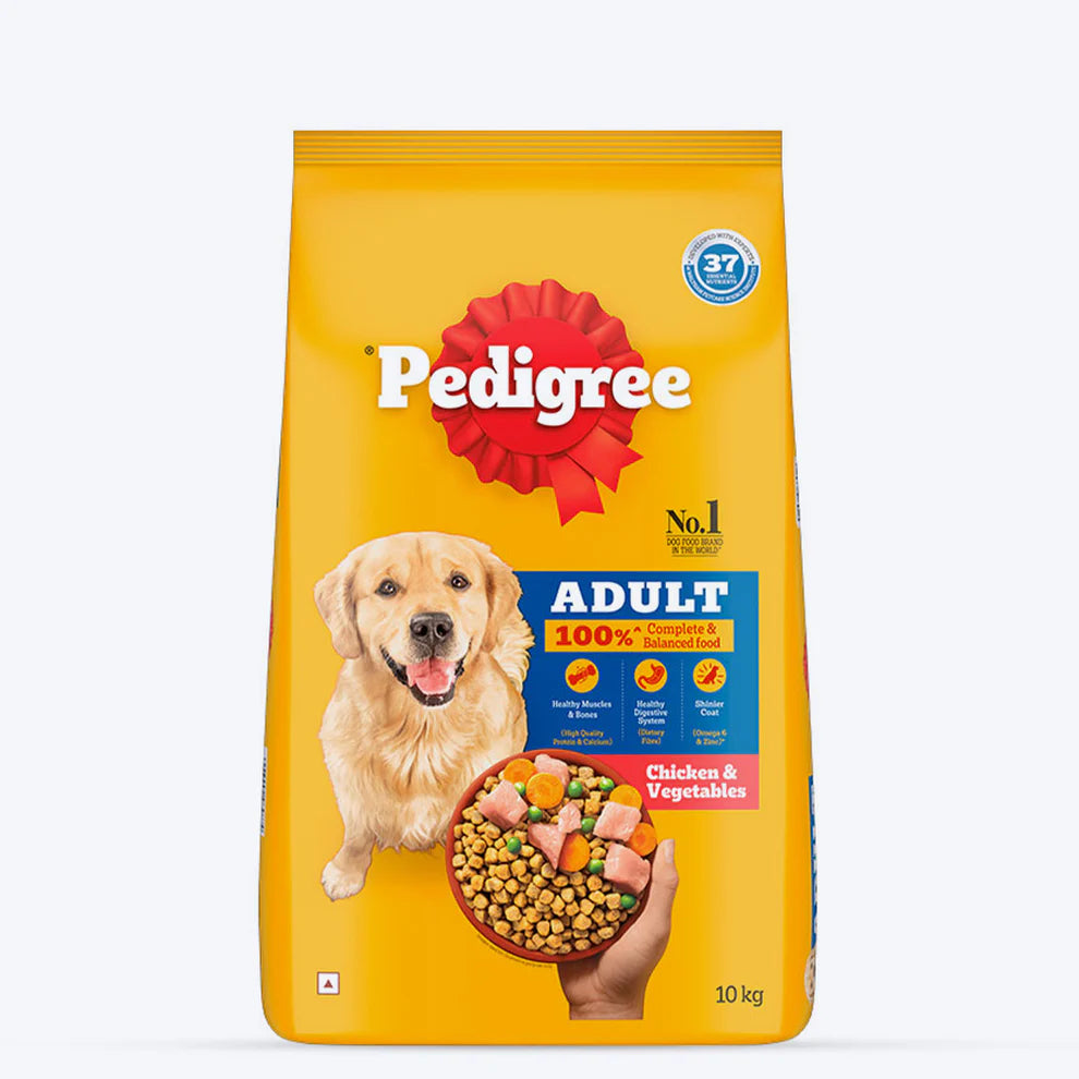 Pedigree Chicken & Vegetables Adult Dry Dog Food is a wholesome meal, packed with essential nutrients vital to the healthy growth of your pet. The natural goodness of cereals, soybean, carrots, peas & milk blend into a tasty treat for your little one. It assures healthier and a shinier coat, strong muscles, good digestive health, healthy bones and teeth and a stronger immune system. Pedigree Chicken & Vegetables Adult Dry Dog Food contains special mix of fatty acids for healthy skin and coat. The optimum quantitative relation and levels square measure for the sturdy teeth and bones. Superior digestion ensures optimum digestion of nutrients. Vitamins and minerals within the food square measure for sturdy system. Proteins provide your dog sturdy muscles. The high-quality meat proteins help give the dog the energy he needs to enjoy a good game of fetch with his favourite ball