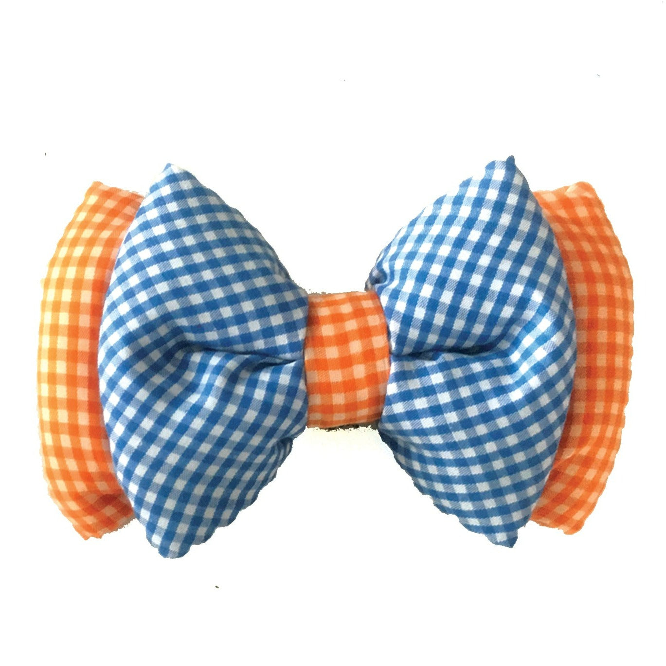 Orange Blue Gingham Neck Bow