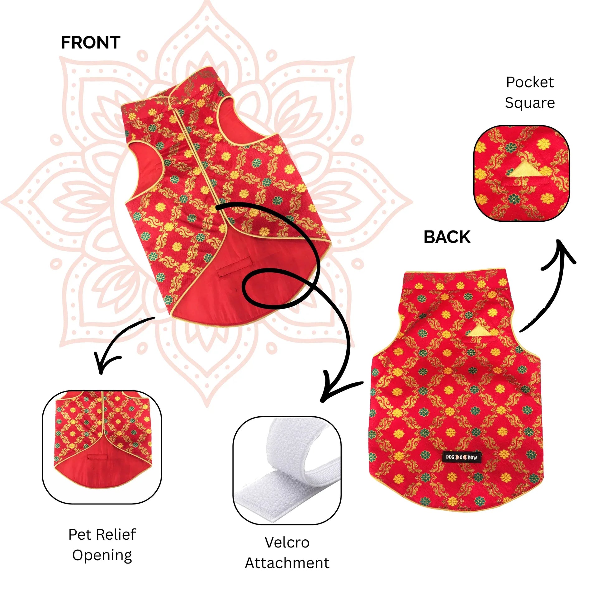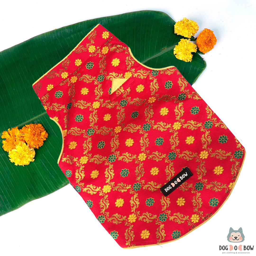 Bringing to you our designer sherwanis for your little sher! We have you covered for your little one's ethnic outfit that will steal away the hooman's thunder! So comfortable, the little one can pounce around like a sher without a hint of discomfort. With a velcro strip in the middle, the pet will be festive ready in a jiffy and just in time to join the family celebrations!