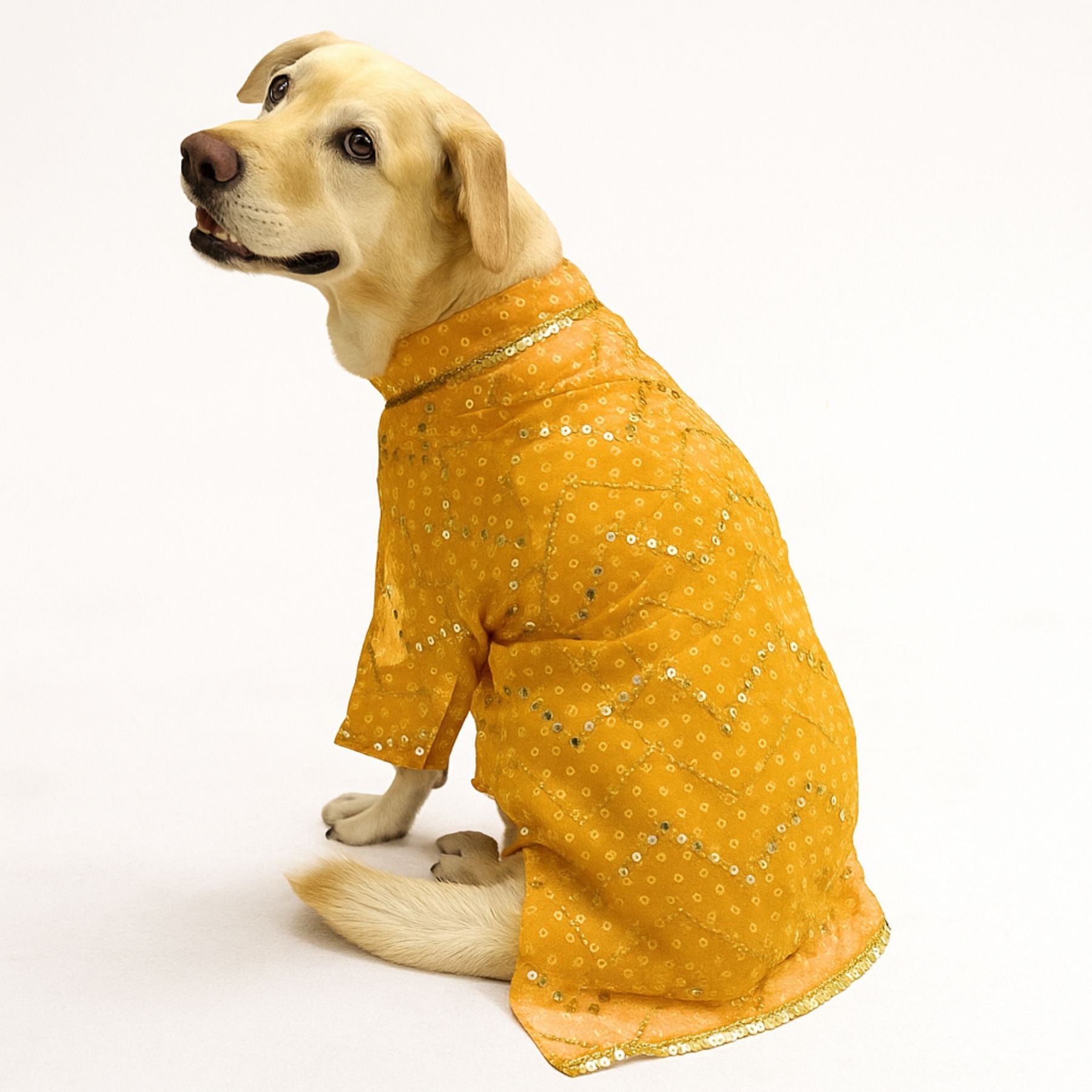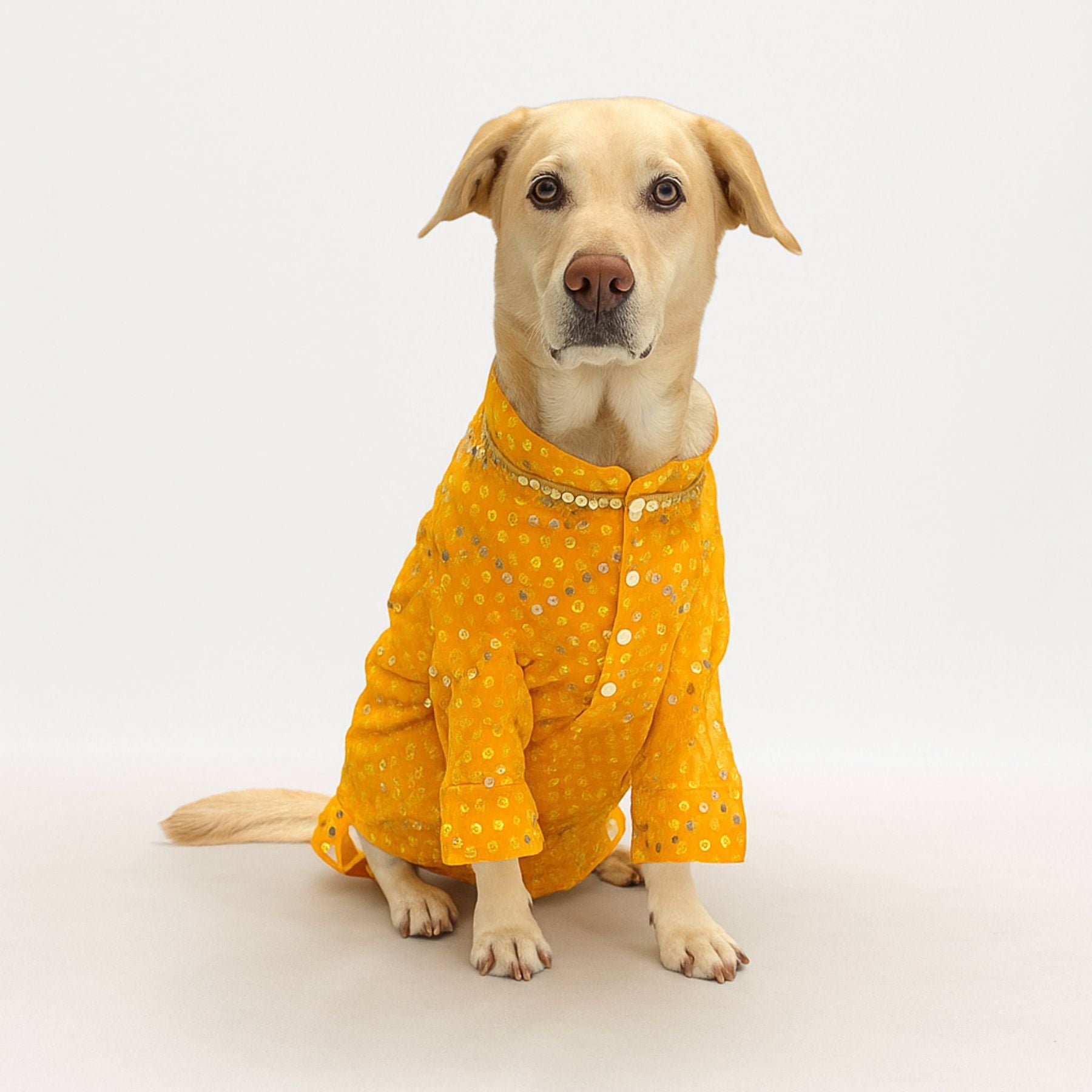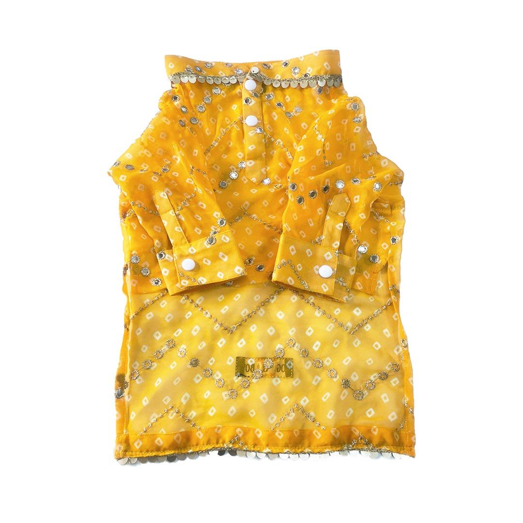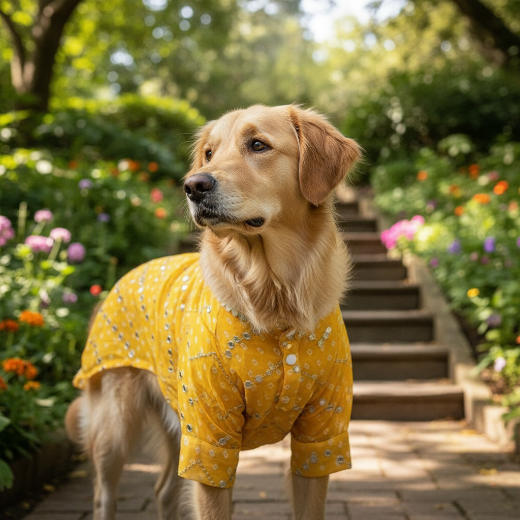 Bringing to you our designer kurtas for your little sher! We have you covered for your little one's ethnic outfit that will steal away the hooman's thunder! So comfortable, the little one can pounce around like a sher without a hint of discomfort. With a mandrian collar and placket with push buttons , the pet will be festive ready in a jiffy and just in time to join the family celebrations! Shop now and treat your dog to the elegance of Indian-inspired fashion.