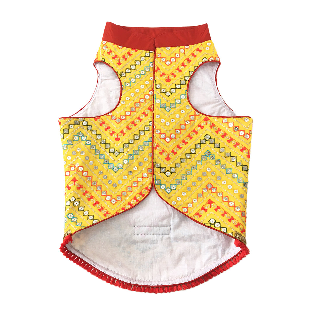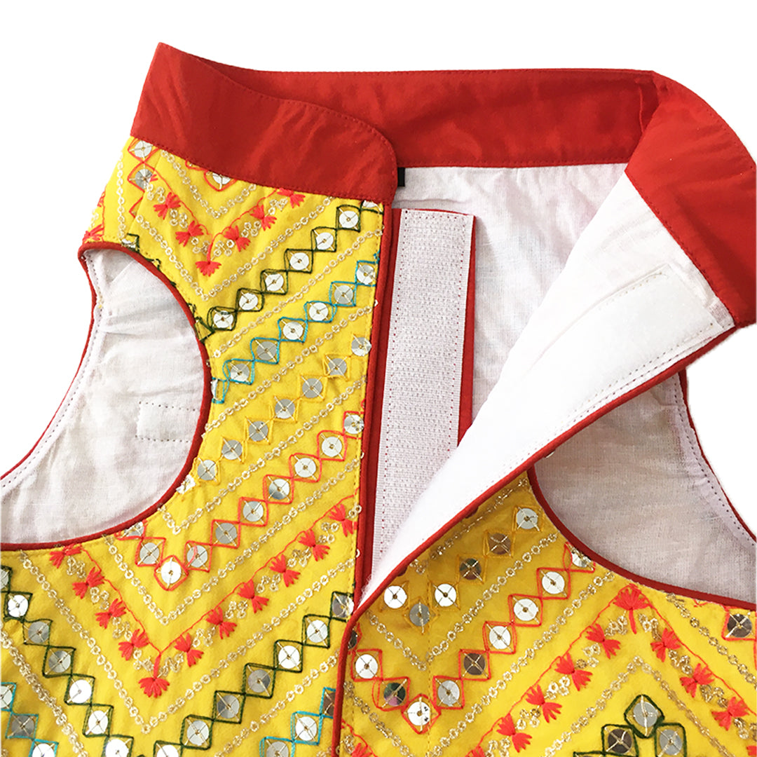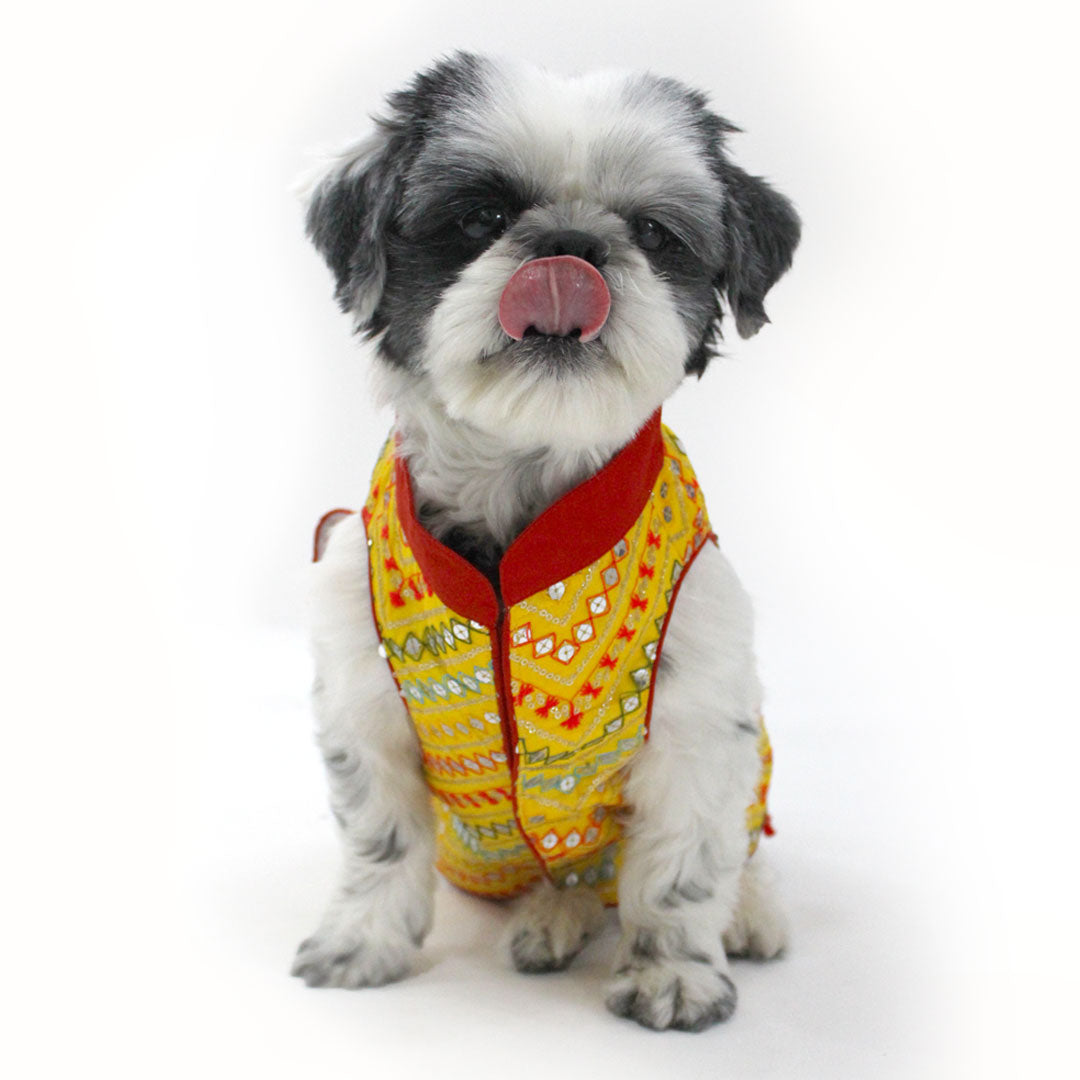 Bringing to you our designer sherwanis for your little sher! We have you covered for your little one's ethnic outfit that will steal away the hooman's thunder! So comfortable, the little one can pounce around like a sher without a hint of discomfort. With a velcro strip in the middle, the pet will be festive ready in a jiffy and just in time to join the family celebrations!