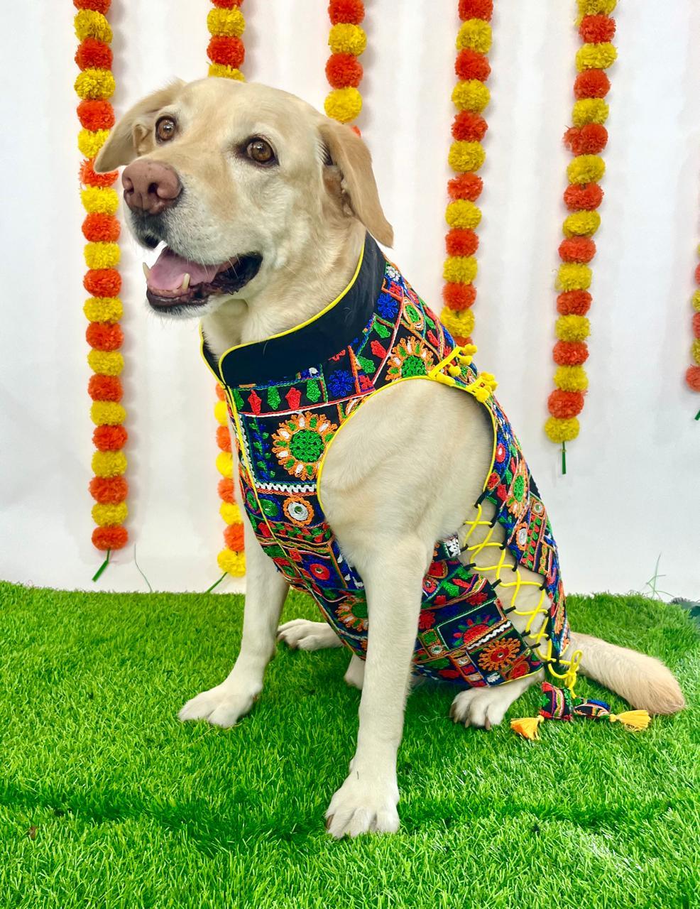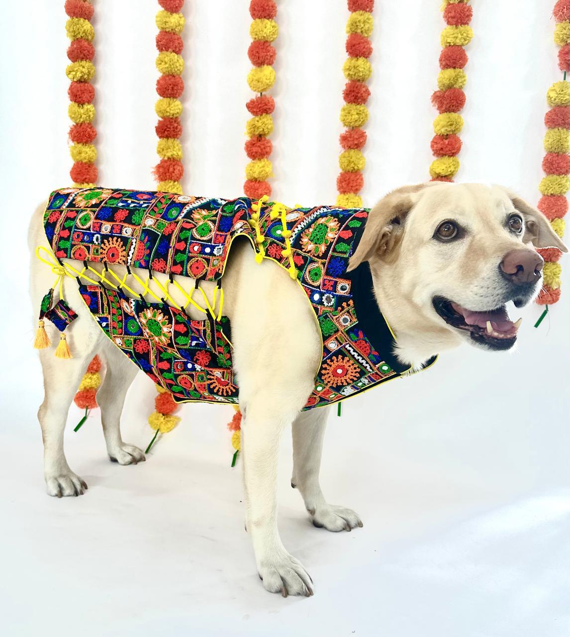 Bringing to you our designer sherwanis for your little sher! We have you covered for your little one's ethnic outfit that will steal away the hooman's thunder! So comfortable, the little one can pounce around like a sher without a hint of discomfort. With a velcro strip in the middle, and side ties ups for adjustment, the pet will be festive ready in a jiffy and just in time to join the family celebrations!